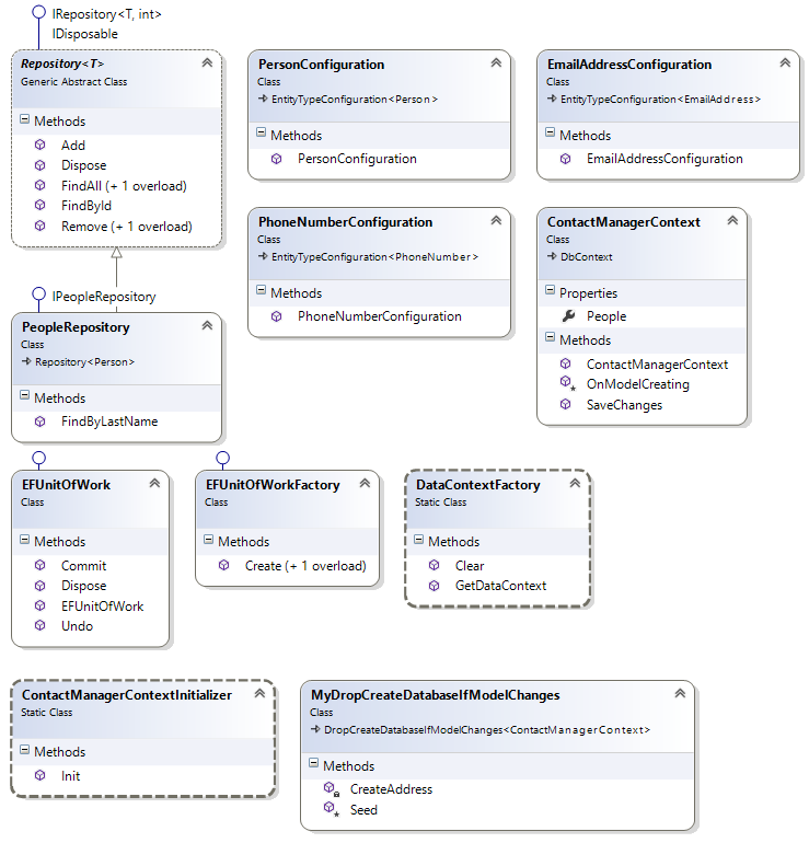 Figure 1-13 The Class Diagram for the Spaanjaars.ContactManager45.Repositories.EF project (click to enlarge)