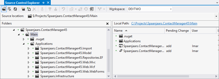 Note: these steps are heavily borrowing from an earlier article I wrote about setting up a project for team development and TFS. I decided to repeat part of the steps here and make them more specific for the Spaanjaars.ContactManager application.